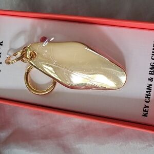 Elegant gold and cream key chain and bag charm by Piper K. Features a cute cherry design with red accents.