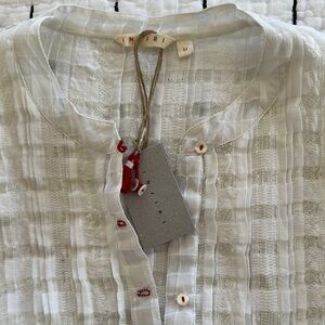 NWT INJIRI unlined white dress with checkers and delicate sewn design. Fun red stitching for buttons. Small spot has dark thread (photo included)