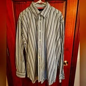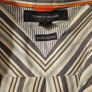 Tommy Hilfiger Gray and Blue Striped Button Down Shirt