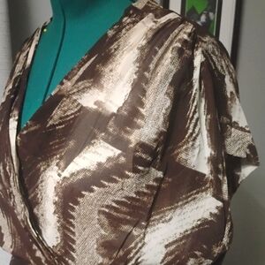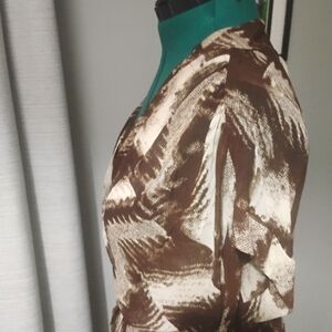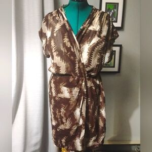 W118 by Walter Baker Abstract Print Faux Wrap Dress Size Large in Brown & Cream