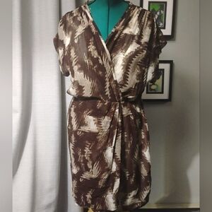 W118 by Walter Baker Abstract Print Faux Wrap Dress Size L in Brown & Cream