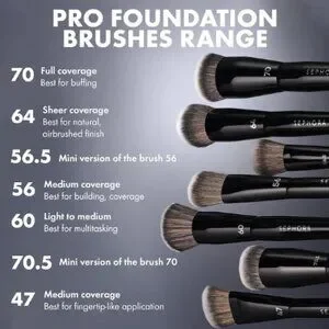 A brush with medium length and soft bristles that are densely packed. Ideal for building foundation coverage.