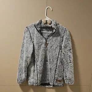 Cozy fleece hoodie. Full zip front. Soft and warm.