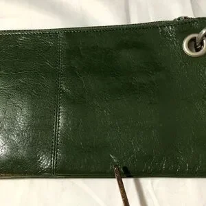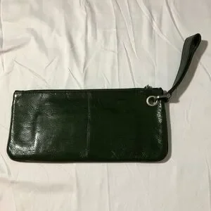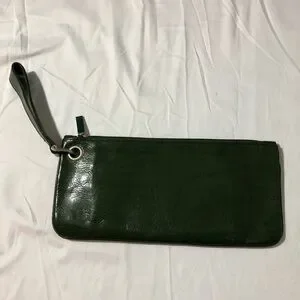 Hobo international green leather wristlet purse classic quiet luxury minimalist