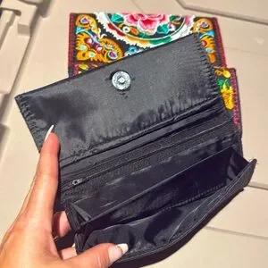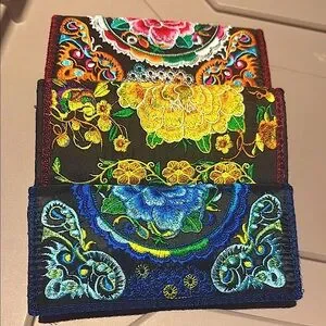 🆕 Vibrant embroidered wallets with textured floral designs. Features a red & orange, a blue & yellow & a yellow & green wallet, Set of 3. Wallet have two main compartments for optimal organization & one centerfold zip pocket for securing smaller items. Flap button locking closure for added security.