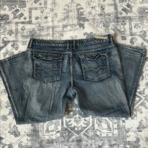 Well loved pair of Buffalo David Britton jeans that still have a lot of life left. These are a vintage pair that were worn consistently. Please see all pics for noted flaws.