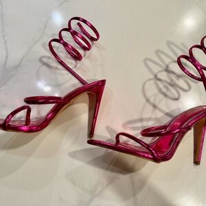 Step into elegance with these Liliana heels, showcasing a vibrant pink hue and a sophisticated pointed-toe design. The charming bow detail on the front adds a touch of femininity, making these shoes a standout choice for any occasion. With their sleek silhouette, these heels are perfect for those looking to make a bold fashion statement.