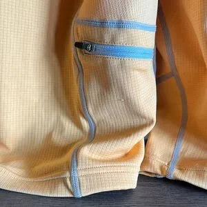Vibrant orange pullover with a sleek quarter-zip. Ideal for sun protection and style.