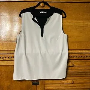 Peter Nygard Classic White Black V Neck Sleeveless Top