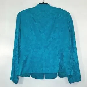 VTG 80s ADRIANNA PAPELL Women Skirt/Jackets Set Floral Long Sleeve Silk 12P Blue