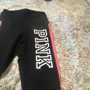 Stylish black leggings with pink accents. Features bold lettering on the side. Have been worn,only saleing because too small , they are comfortable
