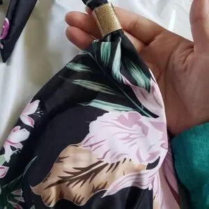 This stylish swimsuit top features a vibrant floral design. The halter neck adds a touch of elegance, perfect for a day at the beach or pool.