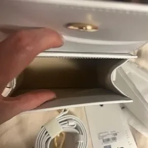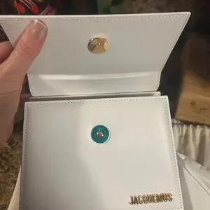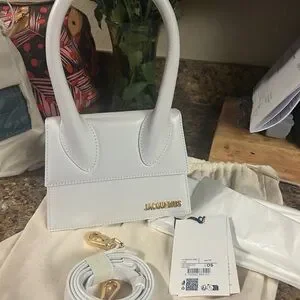 Elevate your style with the Jacquemus White Leather Handbag. This chic accessory features a sleek design and premium craftsmanship. Perfect for any occasion. Brand new with tags, strap and dust bag!