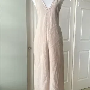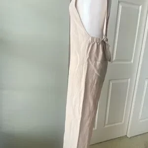 NWT ZARA Linen Cotton Beige cream Jumpsuit Pants Cut Out Xsmall Orig $50