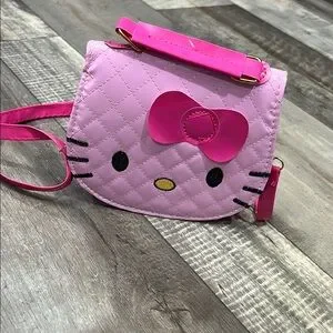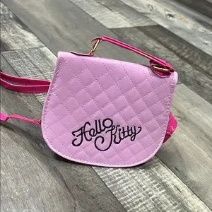 Adorable Hello Kitty crossbody bag in a vibrant pink color. Perfect for kids who love fun and stylish accessories. Features a quilted design with a cute Hello Kitty face.