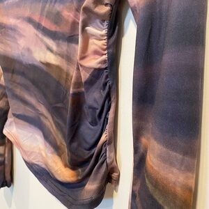This SHEIN crop top features a striking asymmetrical design in vibrant blue and orange hues. The fitted style accentuates the body's contours, offering a chic and modern look. Crafted from a lightweight material, it provides both comfort and style for any occasion.