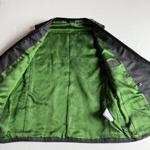 This luxurious quilted vest from the Lanvin Collection features a sophisticated geometric pattern, rich wool blend exterior, and a vibrant green satin interior. Faux leather-trimmed pockets and an asymmetrical button closure add a modern twist to a classic silhouette. Made in Japan, this vest is perfect for layering with elevated casual or business casual looks.
