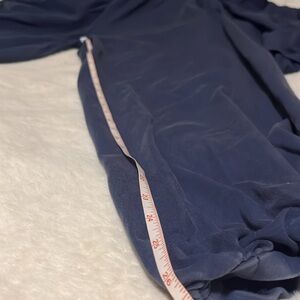 I bought the wrong size, whoops. This is a reposh. Purchased from person who said they wore it a few times, I only tried on. This is basically new! Dropped photos with measurements all approx. this does stretch. The pants are a bit oversized and the top is TTS.