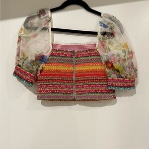 Alice + Olivia Vibrant Crop Top with Puff Sleeves
