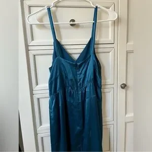 Chic teal sleeveless dress with a flattering V-neckline. Perfect for any occasion. Between mini and midi length. Breathable Satin-Like material. I am willing to negotiate price.