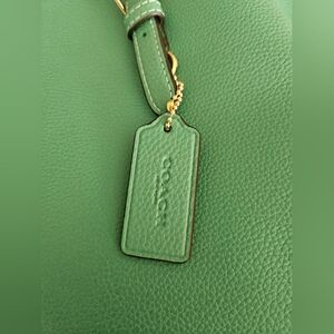 COACH beautiful grainy tote in vibrant green color. Interior with multi compartments. Signature logo and authenticity leather patch on the inside. Signature leather charm.