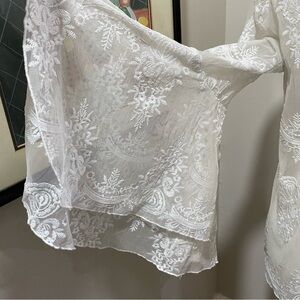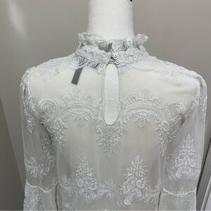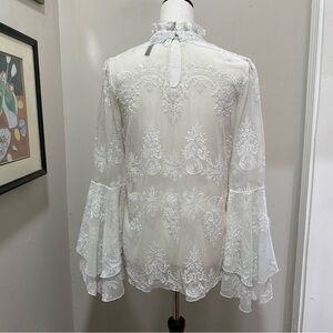 BCBGMaxAzria Bell Sleeve White Lace Blouse Size Small Ruffled Mandarin Collar