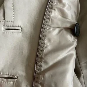 Elegant belted trench coat jacket with high-end button and trimming details, tailored lining/stitching, very fashionable, Ideal for layering.