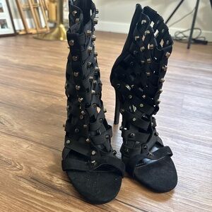 Step out in style with these chic black strappy heeled sandals. Perfect for any occasion, these shoes offer both elegance and comfort.
