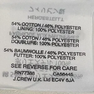 Material: 54% cotton 46% polyester, 100% polyester lining
