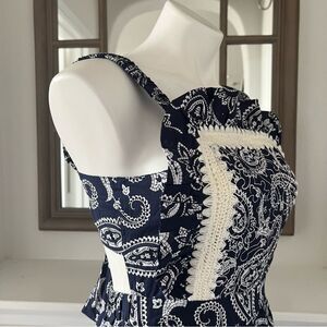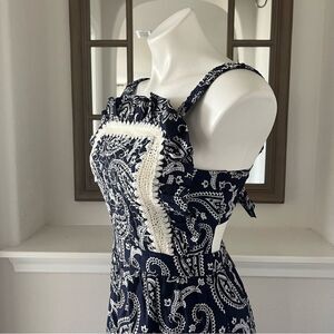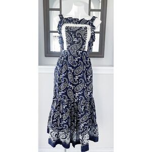 Sea New York Theodora Paisley Apron Midi Dress in Navy, NWT, Size 2