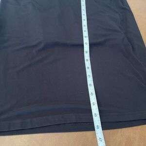 This is a J. Peterman Secret Keeper Dress in classic black, size M. It features long sleeves, a round neckline, and cinched sides for a bodycon fit. Made of a knit fabric blend of spandex, rayon, and cotton, this midi-length dress is suitable for various occasions like travel, weddings, parties, and business. Machine washable and perfect for all seasons.