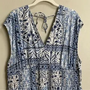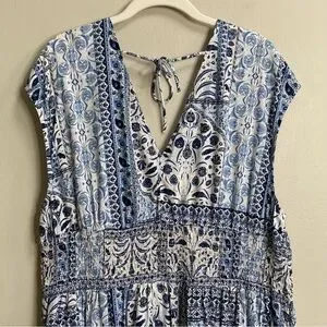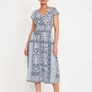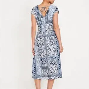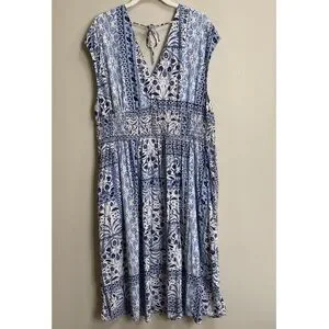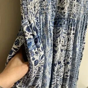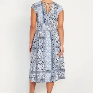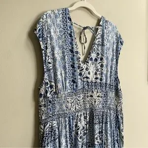 Old Navy Blue Paisley Print Waist-Defined Smocked Midi Dress Size XL Petite
