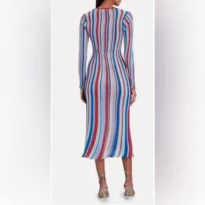 ๐ NWT Misa Los Angeles Rafael Striped, Metallic Long Sleeve Midi Dress. Medium.