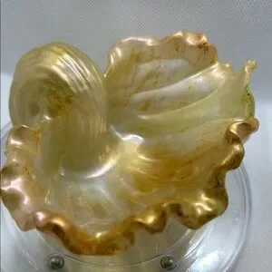 Elegant gold leaf-shaped decorative bowl. Perfect for adding a touch of luxury to any space. Handmade with Resin , a shell 🐚 bowl from the sea . Can be used for air plants, keys , change or jewelry.