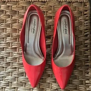 These vibrant coral heels from Comfort Plus by Predictions feature a sleek pointed toe design and a medium-height heel, perfect for adding a touch of elegance to any formal occasion. They offer both style and comfort for all-day wear.