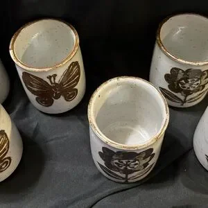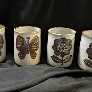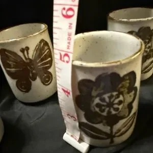 These elegant handcrafted ceramic mugs feature a charming butterfly and floral design. The white and brown colors add a rustic touch, perfect for any kitchen decor.
