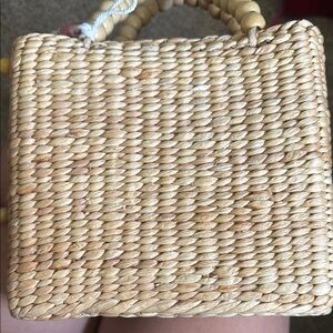 Chic woven straw bag featuring a beaded strap. Adorned with colorful tassels in pink, white, blue and teal. New without tags. Excellent condition. Comes from pet friendly, smoke free home.7.5”x8”x3 in. Strap is 46” from one end to the other. Handles are approx. 11in from end to end.