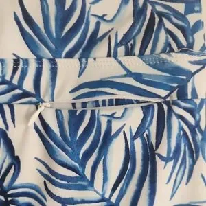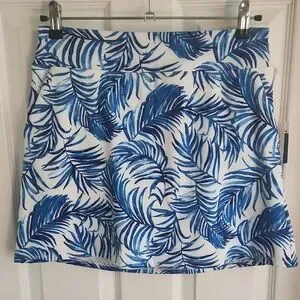 Active wear jacket with a vibrant blue and white pattern with matching moisture wicking skort.