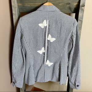 HIPCHIK COUTURE Gingham Glitter Butterfly Print Blazer Blue White Size 6