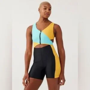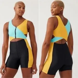 NWOT Outdoor Voices Cutout Bodysuit in Capri/Mango/Black medium