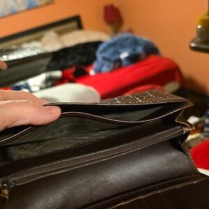 Luxurious Gucci wallet in dark brown leather. Features embossed GG pattern and metal logo accent.