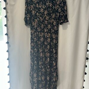 This stunning midi dress by ba&sh features a captivating blend of black and pink hues, perfect for making a statement. The flowing silhouette and elegant design make it ideal for both casual outings and special occasions.