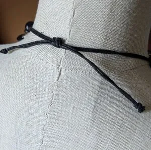 It's adjustable so it can be worn as a choker or a bit longer if desired.