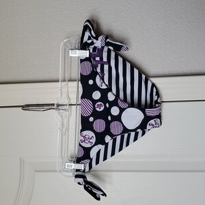 Experience the perfect blend of style and comfort with Lost's black and white striped bikini, swim. This accessory features a chic horizontal stripe pattern, enhanced by elegant tie details on the sides. size L, reversible bikini, black,white, purple. Ties on each side.... Ask me anything!