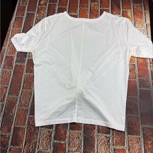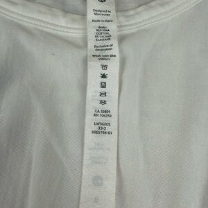 This white short sleeve t-shirt from Lululemon Athletica features a stylish tie front detail that adds a modern twist to a classic design. Made from soft, comfortable fabric, it's perfect for casual outings while maintaining a chic and polished look.