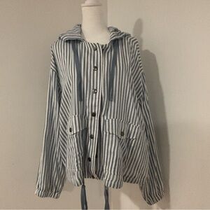 Torrid Blue and White Striped Snap Front Hooded Jacket Plus SIZE 0 (12) NWT