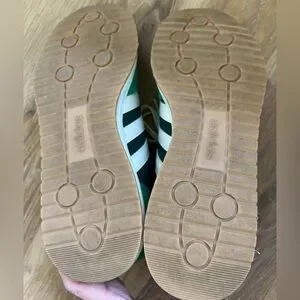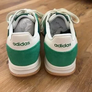The perfect blend of vintage style and modern comfort, these Adidas sneakers feature striking green suede with white accents. The classic color combination ensures versatility and timeless appeal. Excellent condition, worn twice. Smoke free home.