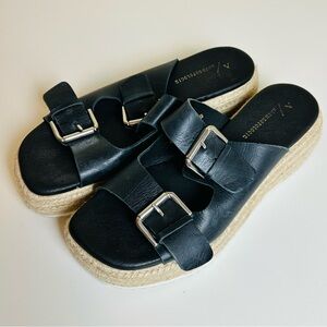 By Anthropologie Double Buckle Platform Sandals in Black Size 8