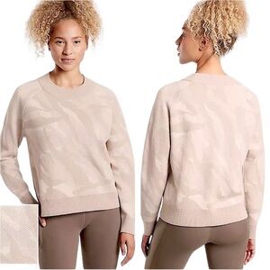 EUC women’s size XXS ATHLETA Jacquard Crewneck Pullover in Cream Camo Print