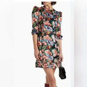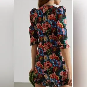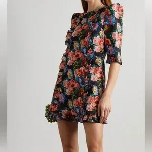 This charming mini dress showcases a vibrant floral pattern in red and pink hues, perfect for making a statement at weddings or cocktail events. The A-line silhouette and puff short sleeves add a playful touch, while the flared skirt offers a flattering fit. Its eye-catching design ensures you'll stand out on any special occasion.